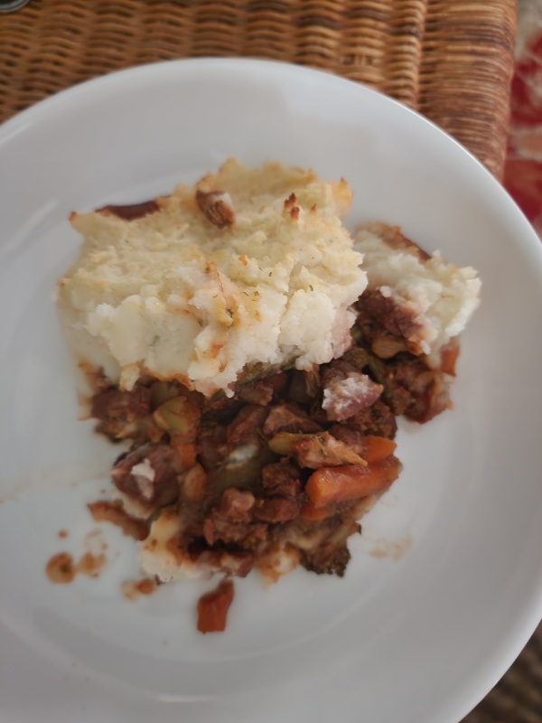 Lamb shepherd's pie with leftover Easter leg of lamb.