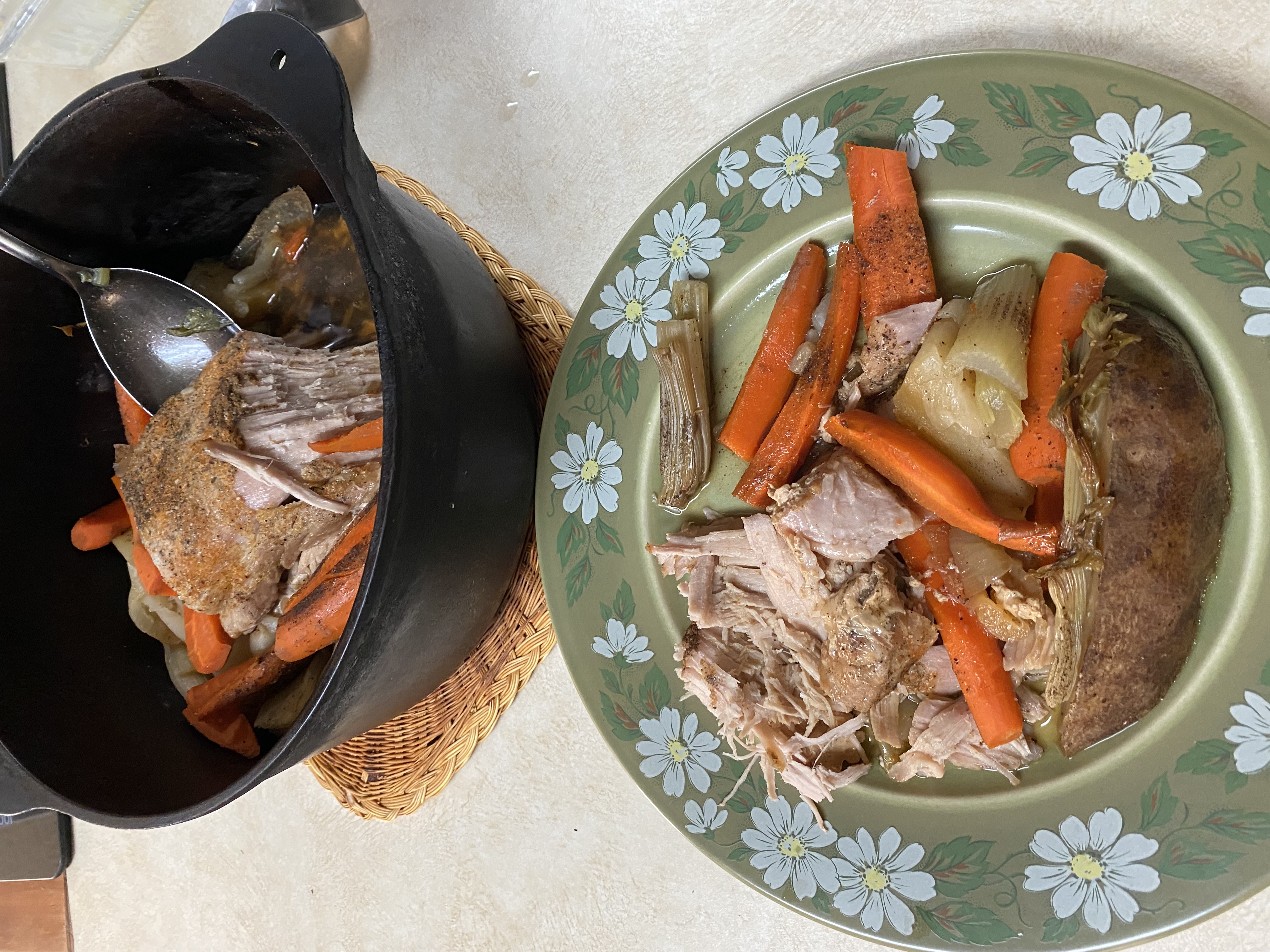 Tonight I had pork roast with potatoes,,carrots and celery. Let it cook 4 hours at 325* it was delicious and lots of leftovers.