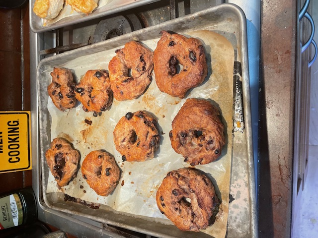 I made a double batch of bagel dough, but I think I messed up the water, it was way too soft. The second batch was cinnamon-raisin bagels.